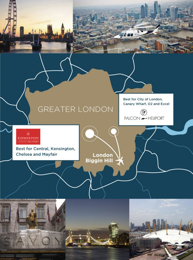 The London Heli Shuttle is an exclusive service operated by Castle Air, with its dedicated London Biggin Hill based fleet of six-seater AgustaWestland 109’s helicopters. Critically having a large based fleet of helicopters provides reassurance and certainty to potential customers that all booking requests will be met and will be provided at a fixed price of £2,300 (+ VAT). Another significant benefit of having a dedicated based fleet is that it affords potential customers total flexibility in that they may request very short notice transfer flights, knowing they will be in the heart of London in a matter of a few minutes.